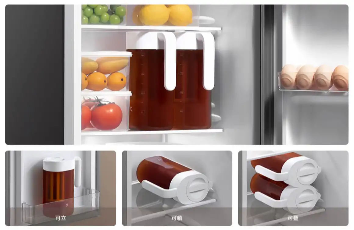 Благодаря плоскому дизайну корпуса чайника, его легко можно поместить в боковой дверце холодильника для компактного хранения или свободно разместить его горизонтально на полке - эффективно используя пространство холодильника.