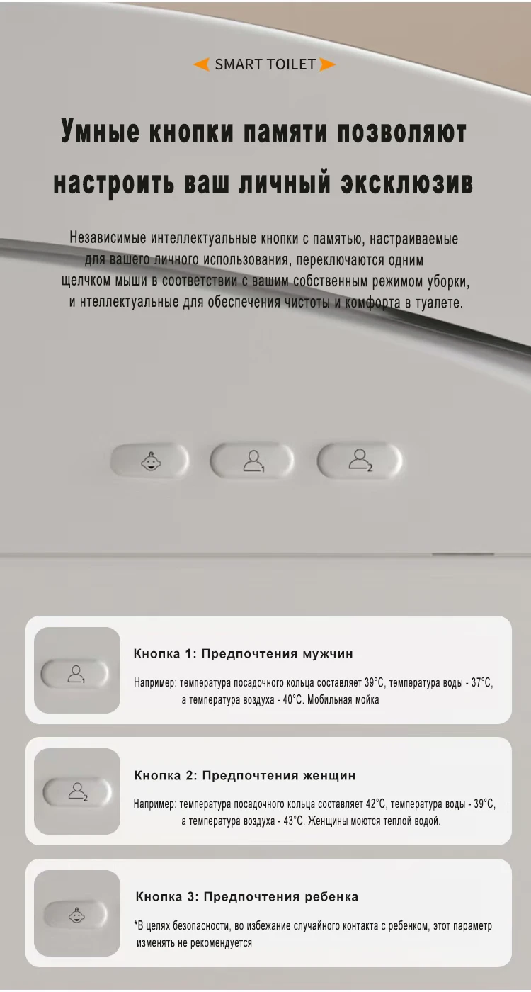 Унитаз умный MEISHIDA-S870, полный автомат, насос, аромаСкидка!В избранноеВ сравнение БрендMeishidaНаправление выпускаВ стену, В пол Доп. бачокС бакомУльтра фиолетовое излучениеЕстьВстроенный насосЕстьГолосовое управлениенетДлина680 ммШирина380 ммВысота520 ммЦветБелый ЗолотоВес45 кгРегион использованияРоссия 34 999 Р 39 999 Р -13% Артикул: S870 FBO / Shenzhen: 30-45 дней: В наличии FBO / Торговая площадка: 2-7 дней: По запросу FBS / г. Красноярск: По запросу – + Итого: 34 999 Р Купить WhatsApp Обзор ХарактеристикиБрендMeishidaНаправление выпускаВ стену, В пол Доп. бачокС бакомУльтра фиолетовое излучениеЕстьВстроенный насосЕстьГолосовое управлениенетДлина680 ммШирина380 ммВысота520 ммЦветБелый ЗолотоВес45 кгРегион использованияРоссияОтзывы 0Отзывов нет